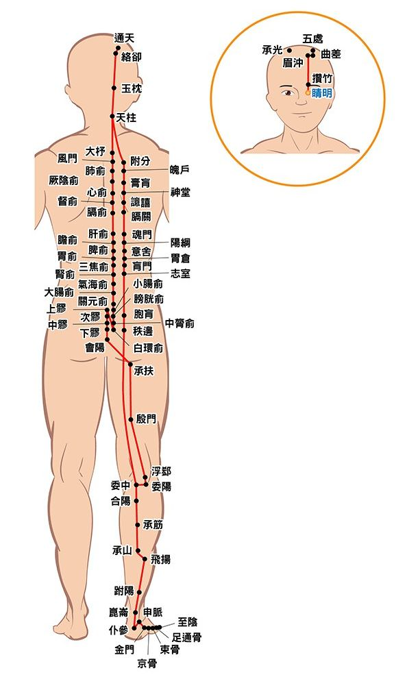 膀胱經,全名為足太陽膀胱經,是十二經脈中循行最長、覆蓋面積最大的一條經絡。